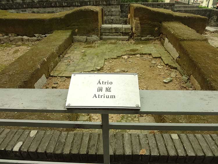 床のタイルが残る前庭の部分です。前庭という前提で見てみると、「アトリウム」って広いイメージがあったのですが、昔は(というかこのコレジオに関しては)そうでもないのかな??