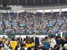 帰りは混乱が起こらないように、ブロックごとに順番に退場という形をとっていました。いろいろ考えられているなあ。雨もすっかりやみ、ボランティアのみなさんに笑顔で見送られて退場。これ、準備も片付けも大変そうだな…みなさんに感謝です。楽しかった…というと軽い感じだが、なんだか心温まる式だった。