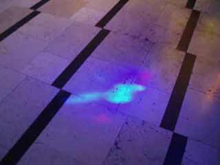 床に落ちるステンドグラスの光。きれいですなあ… |