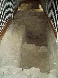 祭壇の背後にあるマリアの住居跡。天使がマリアに受胎告知した場所とされ、大事にされています。きれいになってますが、壁などは古そうですね〜。ちなみに柵があって中までは入れません |