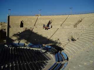 ■カエザリア カエザリアには、ユダ王国を支配するため、ローマ帝国の総督府がありました。海に面して、半円の劇場や闘技場跡などの遺跡が残っています。イエスを処刑したローマ総督ピラトも、ここに来ていたそうです。