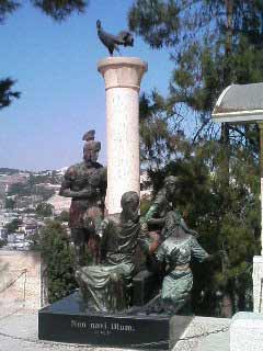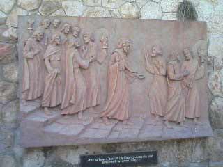 イエスの弟子、ペトロが3度「イエスを知らない」と言った場所です。鶏鳴教会には遺跡があり、貯水槽跡があることから、大祭司カヤファの屋敷跡であると推測されています。イエスは処刑前にこの屋敷の牢につながれたとのこと。ペトロはイエスが逮捕されたときに逃亡しましたが、責任感からイエスの近くに戻り、この屋敷の外でたき火にあたっていたところを、女中に「イエスの仲間だ」と指摘され、「知らない」と否定しています。
