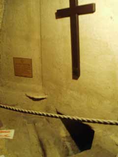 教会の地下には洞窟のようなむち打ちの牢があり、天井に縄を通して罪人をつなぐための穴があいてました。地面にも穴がありましたが、そこには酸い葡萄酒を入れ、拷問で気絶した罪人に飲ませて意識を取り戻させるために使われたそうです。暗いし、見ているだけで恐ろしい場所でした。