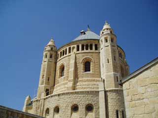 オリーブ山を離れ、エルサレム旧市街の南、シオンの丘へ。ここは現在、旧市街の城壁の外にありますが、古代イスラエル王ダビデの時代(紀元前1000年頃)は城壁内であり、お金持ちの人が住む中心地だったそうです。