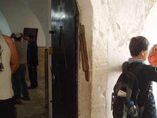 ダビデのお墓出入り口。木の棒のようなものが、壁に貼り付いているのがご覧いただけますでしょうか?