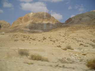死海に沿った道は、死海と反対側は相変わらず岩山ですが、このあたりは塩を含んだ岩塩の岩山です。ソドム山もそんな岩山の1つで、聖書には神に滅ぼされた町の名前で出てきます。一緒に出てくる「ゴモラ」の町はどのあたりかわからないそうですが、「ソドム」はこのあたりだろうと言われています。ソドムとゴモラって、初めて聞いたときは怪物か何かの名前かと思ってた… ソドム山に住んでいたロトは、町を滅ぼしにきた神の使いをかくまってあげたため、神は町を滅ぼす前に、ロトに逃げるように言います。ロトは家族を連れて逃げましたが、そのときにロトの妻が、神の言い付けを守らずに町を振り返ってしまったため、塩の柱になってしまいました(旧約聖書創世記19章)。この話になぞらえて、ソドム山に偶然できた塩柱が「ロトの妻の塩柱」と呼ばれています。