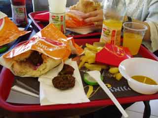 ミサ後、さらに南下してエイラットへ。エジプトは目前です。エイラットにはショッピングモールがあり、かなり発展しているように見えました。ここのファストフード店でお昼ご飯です。私は食事にはあまり興味がないので、いつもはそんなに書きませんが、今回はひよこ豆のコロッケがおいしかったのでちょっとご紹介。