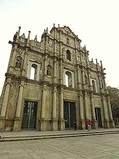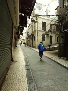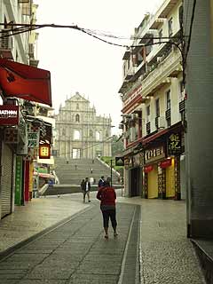 〜早朝のマカオでケンカ目撃〜 カテドラルでまったりしてしまったが、まだ目的地には着いていなかったんだった。地図で確認した道を進み、聖ポール天主堂を目指しますぞ。両脇にお店が並んでいる道を歩いていきます。まだ開店していないので、通りは静まりかえっていますが、人がちらほら歩いているので、思ったほど寂しい感じでもありません。…と、そこへ男女の修羅場みたいなケンカをしている人たちを発見!一組の男女に、派手な格好のお姉さんが何かを怒鳴りつけております!カップルの女の方が応戦!なんだなんだ、男が悪いのか?それとも派手女がからんでいるだけか?言葉がわからないので状況がわからず、見ていても面白くないのでそのまま素通り。なんだったんだろ。 〜やっと軌道修正〜