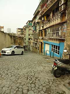 道が細く、ゆるやかな上り坂になってきました。「大三巴街」という通りを歩いているようです。まだかなあ…お、通りの表示がある。脇道にそれて確認。
