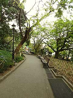 ファサードすぐ横の道を横切り、丘のふもとの道を進みます。木がたくさんあって、気持ちがいいなあ…と思っていると、前方に、運動しているおばちゃん集団発見。道の脇に設置してある、遊具みたいな器具に乗って、せっせと運動している。これって、子どものためのものじゃないんだ…色は黄色と赤でカラフルなのに。ちらちら見ながら、通り過ぎる。ここは地元民の朝活の場なんだろうな。さっきから走って行ったり来たりしている人も見かける。朝から元気な人はうらやましいなあ…私なんか早起き大っ嫌いだもの。毎日仕方なく起きて、体調もよくないので朝活なんてもってのほか。積極的に起きられるようになりたいものです。 〜ひたすら登り続ける〜