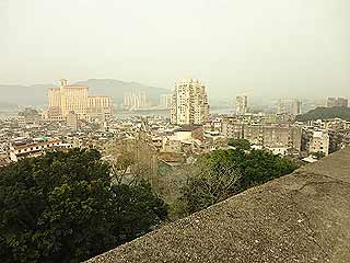 さらに階段を進み、いよいよ砦の頂上へ。おお〜…さすが、眺めいいなあ。今は背の高いマンションとかホテル(例:グランドリスボア)が建っているのであまりよく見えないけど、昔は海がよく見えたんだろうなあ。埋め立てもしてなかったし。