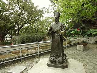 さて、砦のふもとに戻ってきました。ここには砦に行くときから気になっていた像がある。これ、誰だろう…ガイドブックにも載ってないし、結局わからないまま。(後日調べてみたら、こちらに載っていました→「天上の青」様 マカオ〜東西の遠い絆 2 マテオ・リッチだったようです)