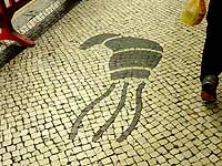 | 恋風旅路 >> 恋風旅日記 >> マカオ旅日記 >> 2日目(その1) +2日目(その1)+(マカオ) 〜朝出かけてみようと企てて〜 午前6時起床。前日に計画したとおり、朝食の前に聖ポール天主堂を見に行くのだ。準備をして、6時半過ぎに部屋を出る。出発前、日本で「出かけてきます」とホテルのフロントに鍵を預ける無駄なシミュレーションをしていた私。しかし昨晩、部屋の引き出しをあさっていたら「シントラご案内」みたいな冊子を見つけ、「ホテルのカードキーはチェックアウトのときまで持っていて下さいね」というような説明を見かけたので、自由に出入りしていいんだ!楽ちんだな!と気が楽になり、ホテルを颯爽と出発。 〜ポルトガルのモザイク〜 昨日は暗くて気がつかなかったが、すでに歩道がモザイクタイル貼りだー!楽しい!カニとか魚とか、歩いていくと次々に現れる。でも地図はちゃんと見てないと。ここで迷ったら、せっかく早く出てきた意味がなくなる。まずはセナド広場を目指します。 <ここで突然、マカオのカルサーダスコレクション>