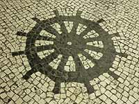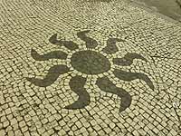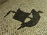 〜人が増えてきました〜 8時を過ぎ、聖ポール天主堂にも人が増えてきました。さて、コレジオ探検も一段落したのでそろそろホテルに戻るかー。見落としたところがあるかもしれないから、もう一度ガイドブックを読み返してみよう。にぎやかになってきた聖ポール天主堂を後にする。また来まーす。 再びカルサーダスを見ながら、ホテルへ向かう。途中、少し迷ってジョルジェ・アルバレス記念像に立ち寄ってみる。広場になっていて、ここにもモザイクが敷き詰められていました。