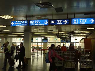 次は来たときと同じく、無人の地下鉄(『地球の歩き方』にはシャトルトレインとかAPMと載っていた)で空港の搭乗ゲートへ向かいます。行きは貸し切りのようだったけど、今回は人がたくさん。第2ターミナル的なところで一回止まるので、間違えて降りないように。終点で降り、みんなそれぞれの搭乗ゲートへ向かって散っていきます。ホームに液晶の掲示板があるので、自分が乗る飛行機の搭乗口の番号を確認。搭乗口によってエスカレーターに乗ったり、そのまままっすぐだったりと、分かれ道が多いので気をつけないと。 〜香港ドルさらば〜 地下からだいぶ上がってきて、日差しが入る階までやってきました。もう少しだ。香港国際空港、かなり広いが、案内どおりに歩いていけば特に迷うこともない。やっと搭乗口を確認してから、空港内探検。あ、換金しないとだ。日本人っぽいサラリーマンが換金所にいるのを見て思い出した。私も並んでみる。 換金所のお兄さんは愛想のいい人だった。私はきちんと準備してなかったのでとりあえずお札だけ出し、あとから「あ、まだあった」と香港ドルの小銭をちまちま出していく、ということをやってしまったため、お兄さんに迷惑をかけてしまった(でも端数だったのか小銭はほとんど戻ってきた)。「あと100円あれば1万円札で返せるよ」と言うので、100円玉を渡して1万円返してもらった。こういうやり方もあるのか。最後にサインをしろ、というので「漢字でいいのか?」と思いつつ、お兄さんの隣を見ると、前にサインしたと思われるサラリーマンのサインが見えた。やっぱり日本人だったか。サラリーマンが日本語でサインしていたので、私もそのまま漢字でサインしておいた。 〜お腹へった〜