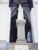 平和公園の方は静かなのに対して、こちらはおみやげ屋さんいっぱい、人もたくさん!大浦天主堂への坂道にずらっとおみやげ屋さんが並んでおります。ちょっと気になるが…帰りに見ればよい!と自分をおさえ、いざ大浦天主堂へ。途中の小さな広場のようなところに、レリーフがあった。そこのベンチでなぜか団体券を拾う。だってー、デザインが違うんだもん。欲しいんだもん。入り口のマリア様の像の下には「1,脱帽 2,静粛 3,撮影禁止 4,禁煙」と書いてありました。最低限のルールですな。撮影はしたかったが。私が入ったときには人がいなかったのに、あとからぞくぞくと入ってきました。客の入りって、何か波があるんだろうねぇ。それはともかく、後ろにいた二人組の女がうるさかった!静かにしましょう…自分も友人と行く時には気をつけます。女どもが消えるまで、テープの説明3回くらい聞いたわ。キリシタン復活のマリア様の像も見ました。なんか、マリア様って落ち着くなあ…クリスチャンじゃない私でもそうなんだから、マリア様人気もうなずける。ステンドグラスも祭壇もとってもきれいで、私の教会イメージにピッタリ!形ばかりにこだわってますが、ミーハーなので許して下さい。 〜ちょっと幕末のお勉強〜 〜グラバー園は混んでいるかと思ったが〜
