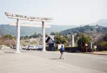 荷物をおばちゃんに預かってもらい、出発!今日は橘神社に行くと見せかけ、釜蓋城へ。1回迷った。また写真撮った。戻ってから、別の道を行くと、すぐに大きな鳥居発見!おぉ〜、ここだここだ。橘中佐の像がある。参道の両脇は桜の木が並んでます。私が行ったときはまだ裸だったが…花が咲いたらきれいなんだろうなあ。見たいなあ〜。トコトコ歩いていると、右手に「千々石清左衛門(ミゲル)の碑」の札を発見。その先には道がずっとのびています。こっちか。親切だ。しかし、この道は釜蓋城への道…私が持ってる情報は神社の敷地内にミゲルの碑がある、ということだったので、神社内もウロウロしてみる。やっぱりないわ〜。
