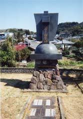 中浦ジュリアン顕彰の碑。上部は船の帆を表し、下は地球をデザインしているそうです♪